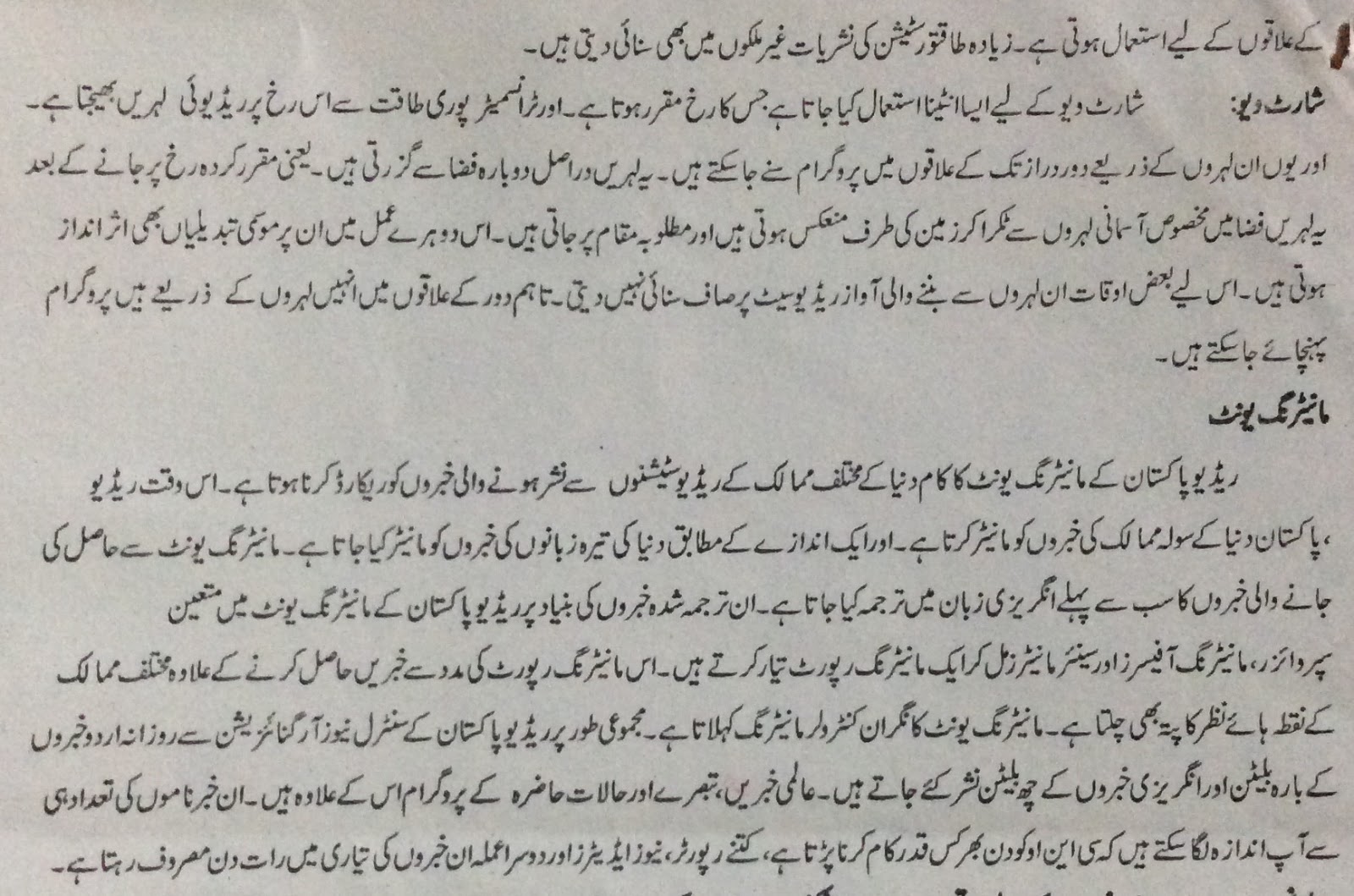 Q: 1 Radio nashriat kay adwar......................................Q: 2 Radio ka deegar zarai ablag say tawlaq..............................