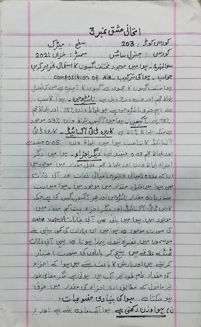 General Science Matric Autumn 2021 Code:203 aiou